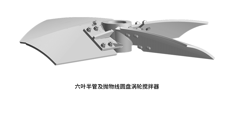 The working principle of this combination is primarily to generate powerful axial circulation and moderate shear forces to achieve efficient mixing and mass transfer. The six-blade semi-tube parabolic disc turbine impellers are radial flow impellers that produce strong radial flow through rotation, thereby providing efficient dispersion capability and excellent mass transfer effects. The high-efficiency axial flow impellers generate axial flow, facilitating fluid circulation within the reactor and enhancing overall mixing efficiency. The blade design of the high-efficiency axial flow impellers is approximately of equal helical pitch surface, optimizing discharge performance while maintaining low shear forces. During the mixing process, fluids can be effectively propelled without damaging sensitive materials due to excessive shear forces. In turbulent operations, the high-efficiency axial flow impellers can maintain lower shear forces, which is crucial for handling shear-sensitive materials. The semi-tube and parabolic disc turbine impellers have a mass transfer coefficient over 30% higher than that of flat-blade disc turbine impellers, with lower power consumption under the same power. This combination is suitable for various industrial applications, including gas dispersion, absorption, mixing, and mass transfer operations, especially suitable for dissolved oxygen operations in fermentation processes.